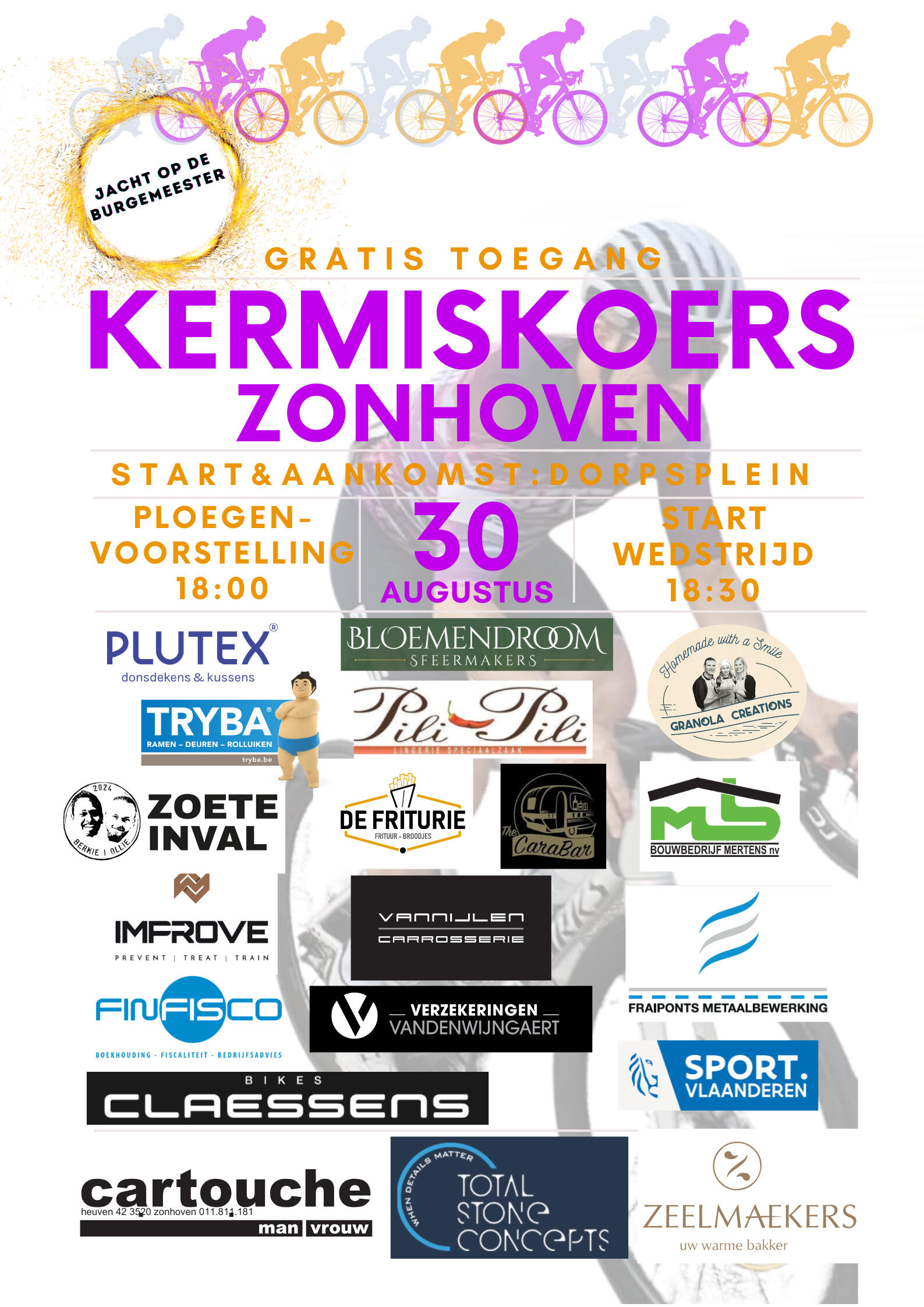 Op zaterdag 29 augustus is het opnieuw koers in het centrum van Zonhoven! Of je nu meefietst, supportert of gewoon van de sfeer komt genieten, dit wordt een dag vol sfeer en plezier.Volg zeker onze social media. Meer informatie over o.a. inschrijvingen volgt snel!